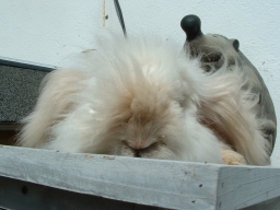 Unser Bonsaikaninchen - Riva war eigentlich schon vergeben, aber er beschloß, niemals groß werden zu wollen und so konnten wir uns von diesem Nanobot einfach nicht trennen. Zwei glückliche Jahre lang war er unser Sonnenschein. Ohne ihn wird der Garten immer ein wenig leerer sein . . .